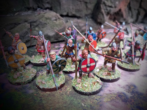 A lot of the archers are made from gripping beast dark age archers - a really old and boring kit with a few monopose sculpts in it. After I had bought miniatures for the project, Victrix brought out their excellent dark age archers (also comes with slings and a few melee options) - for the same price. Oh well.